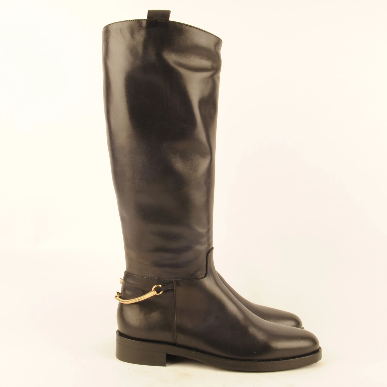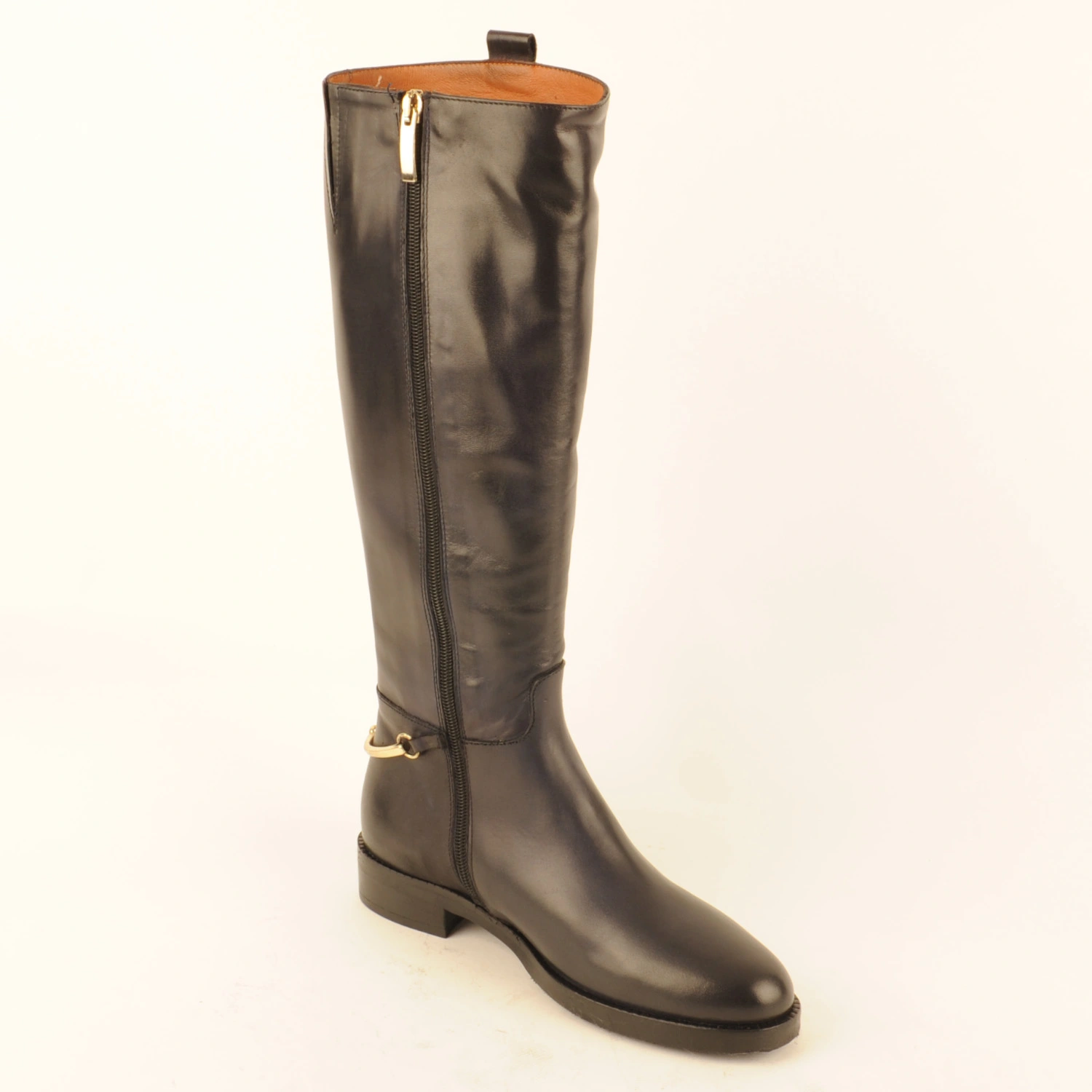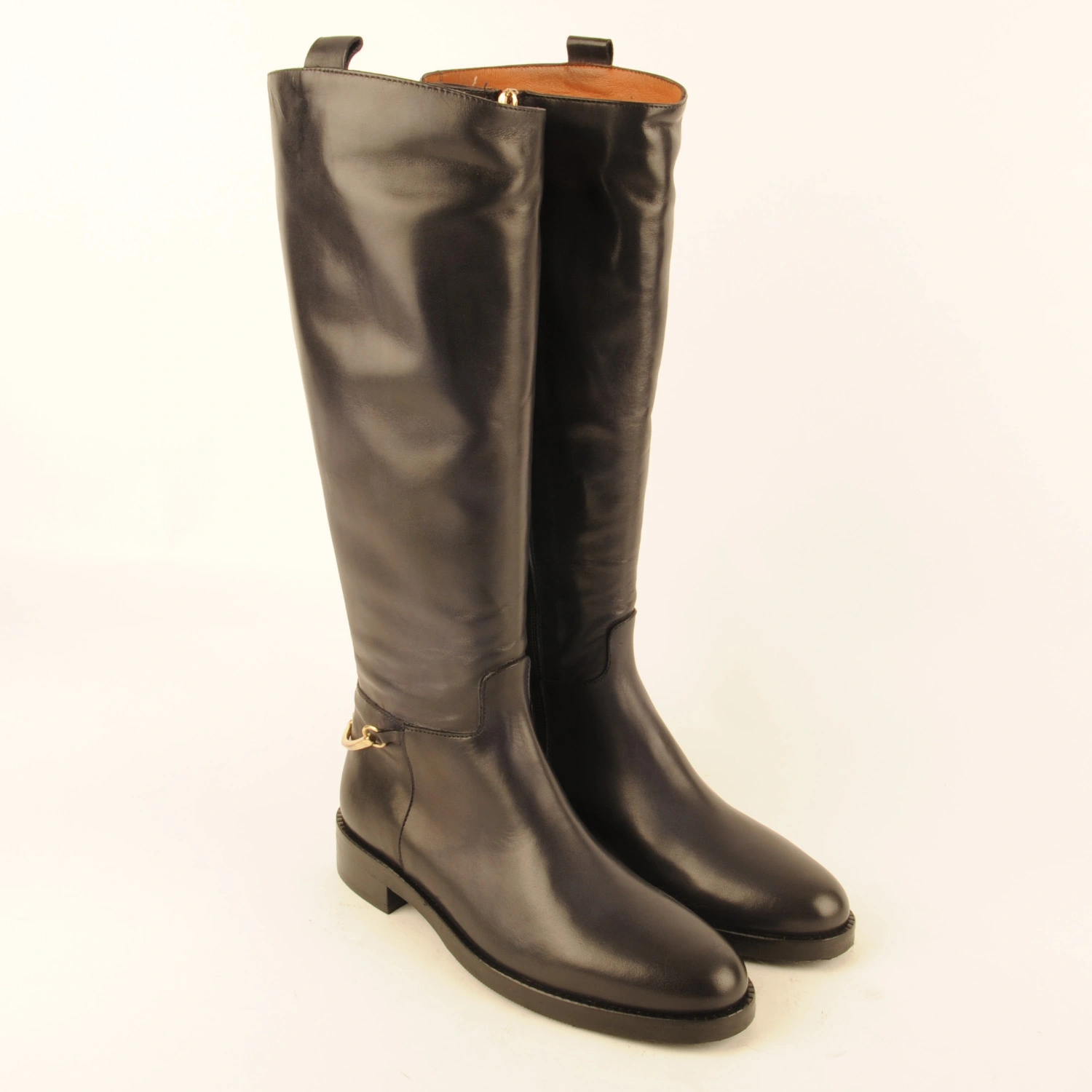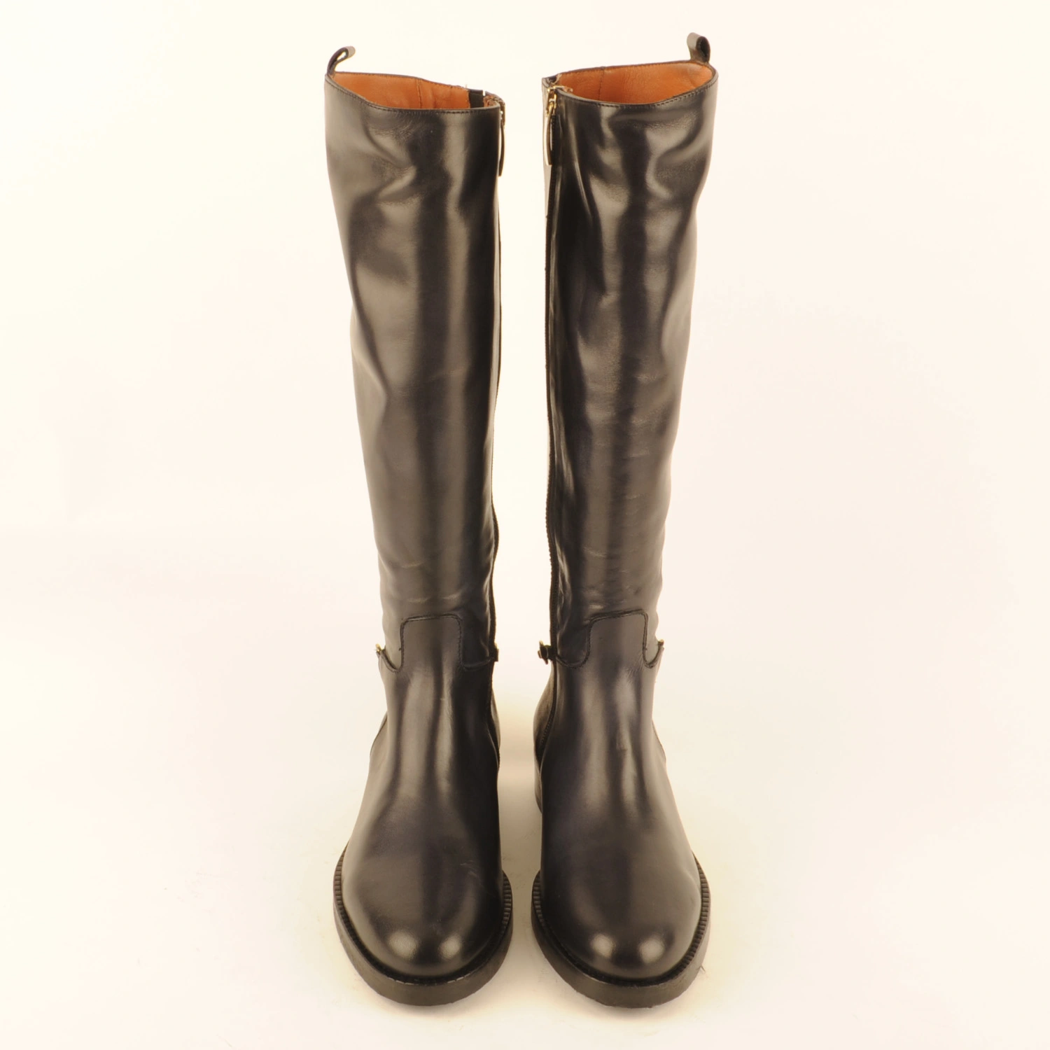 Prisca € 229.00 Colors Sizes 36 37 38 39 40 41 42 Quantity select a size to continue Product information Article number: 1624.20.2 Tall boot made of dark blue leather with a gold-coloured detail in the heel. This boot is leather-lined and has a rubber sole with a 2-centimetre heel.
