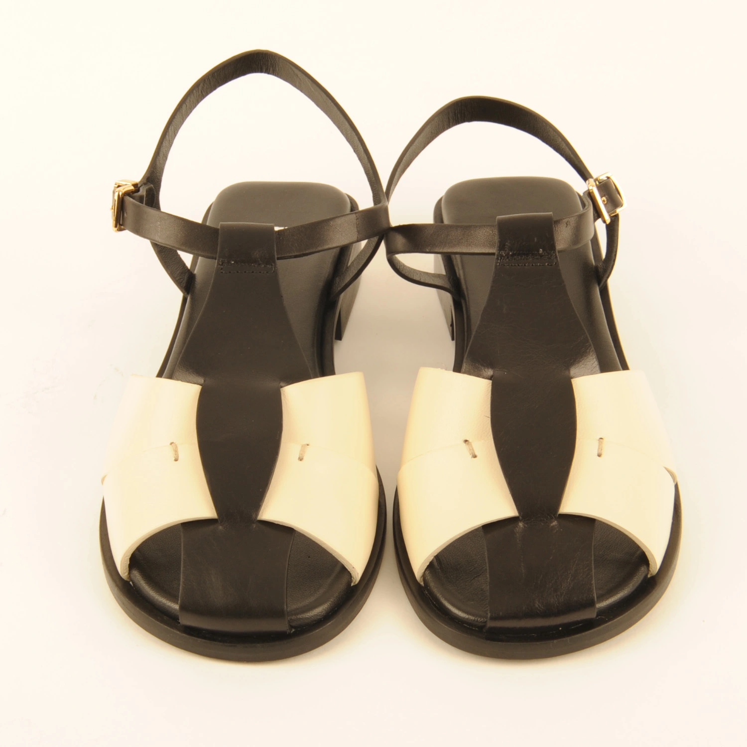 Beatrice € 159.95 Colors Sizes 36 37 38 39 40 41 Quantity select a size to continue Product information Article number: 1824.10.14 Sandal made of a combination of black and off-white leather. This sandal is leather-lined, has a leather sole, and a heel of approximately 2.5 centimetres.