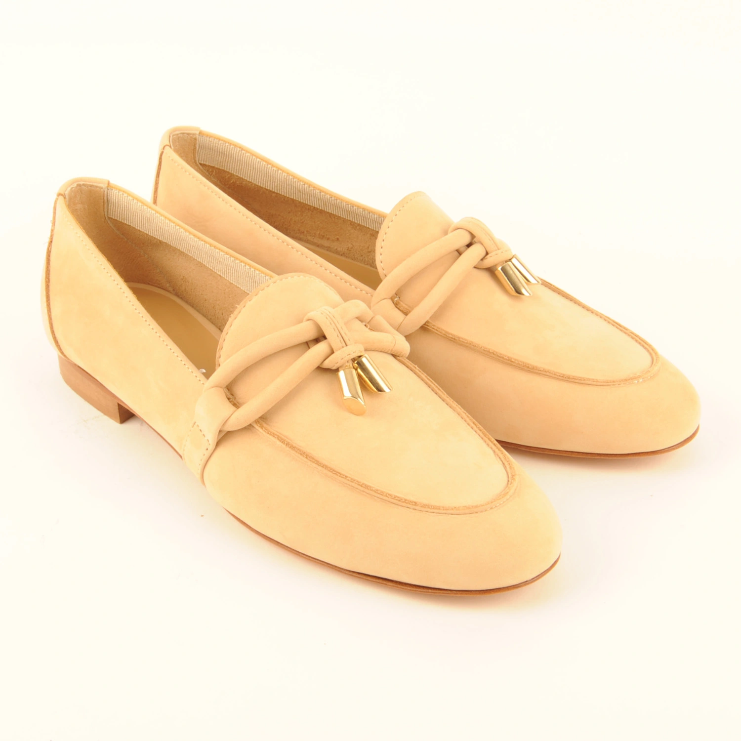 Monica € 189.95 Colors Sizes 36 36+ 37 37+ 38 38+ 39 39+ 40 40+ 41 Quantity select a size to continue Product information Article number: 1322.81.1 Partly leather-lined slip-on made of beige nubuck with a nubuck trim on the instep. This shoe has a leather sole.