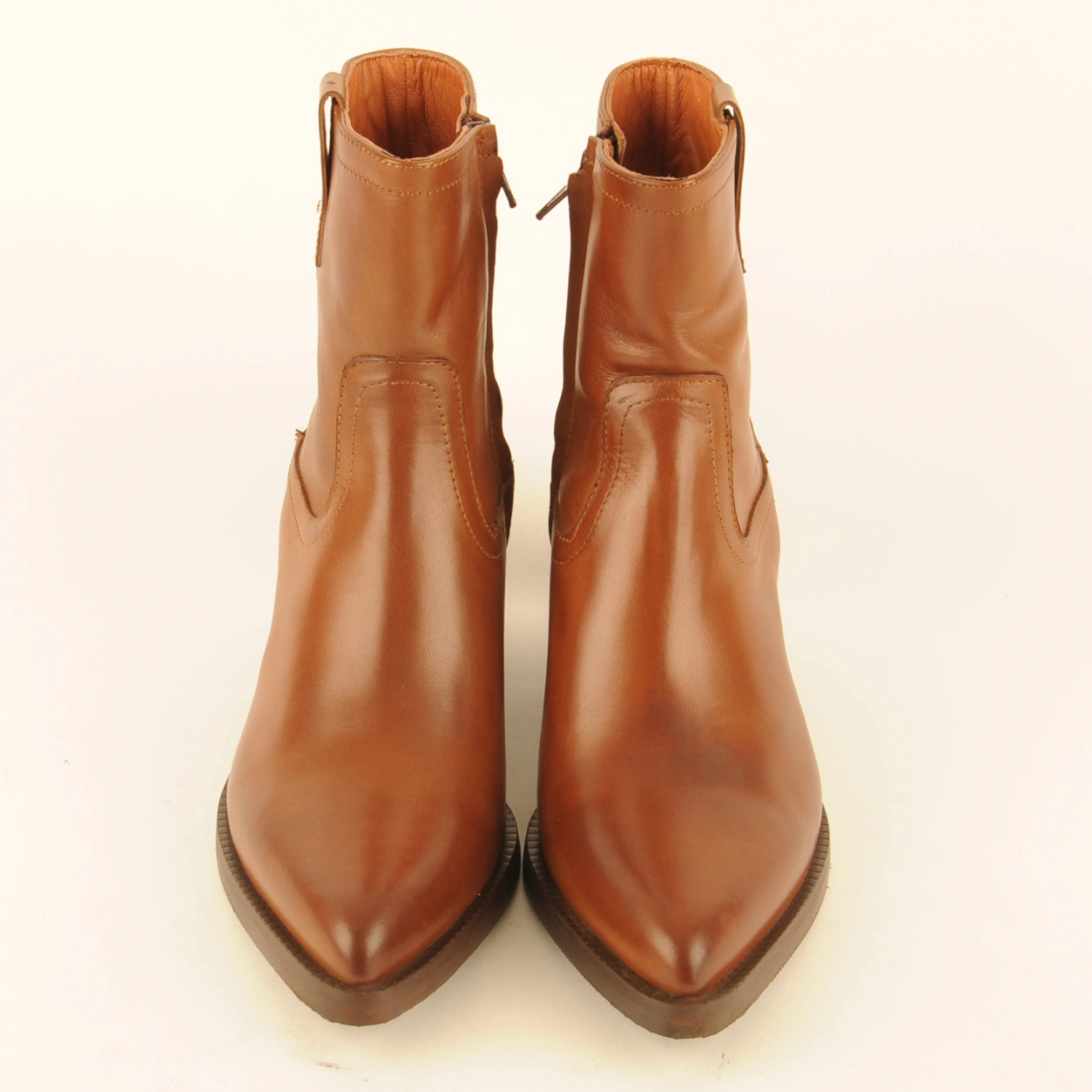 Ginevra € 198.00 Colors Sizes 36 37 38 39 40 41 42 Quantity select a size to continue Product information Article number: 1564.60.2 Pointed ankle boot made of medium brown leather in Texas style. This boot is leather-lined and has a rubber sole with a 6-centimetre heel.
