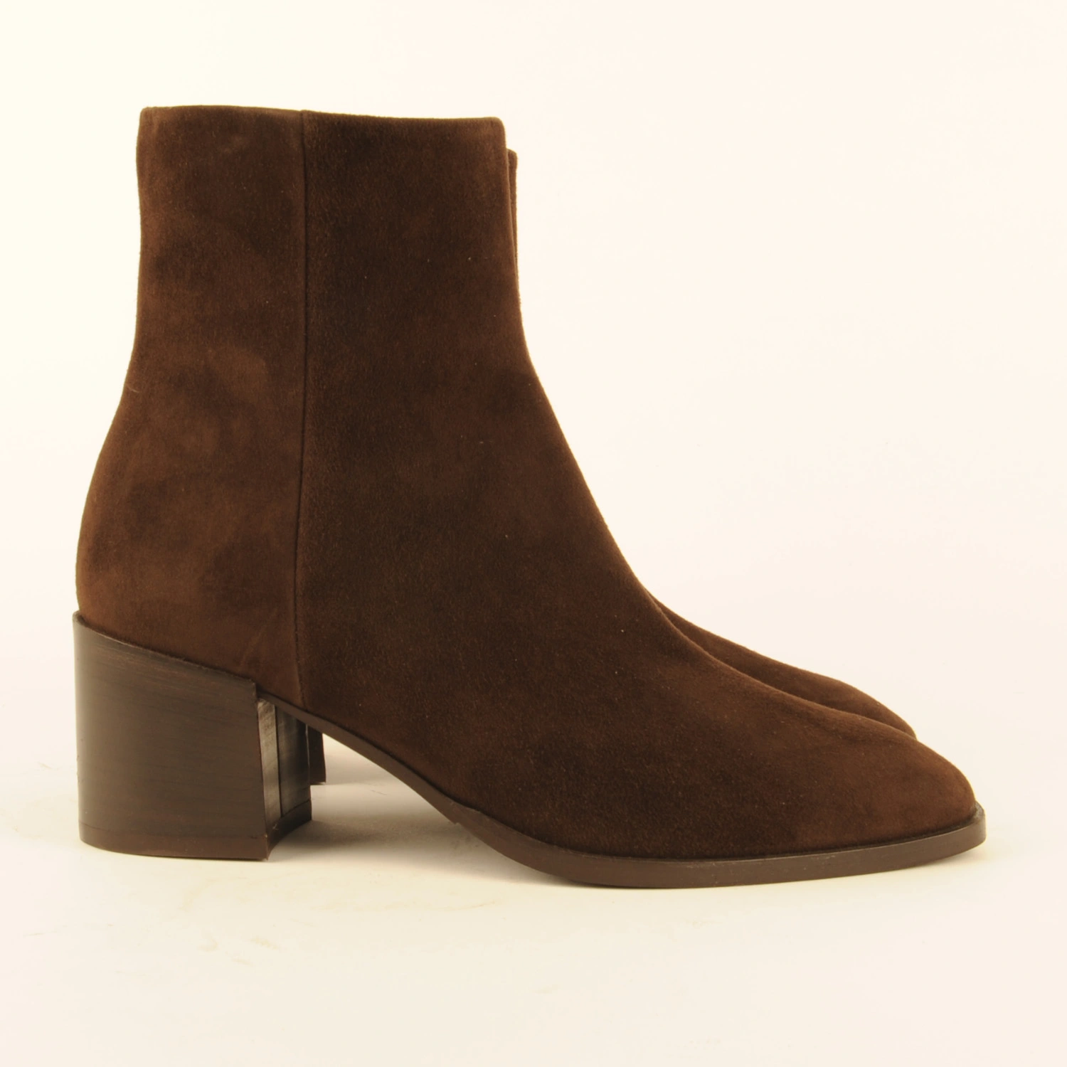 Narcisa-6 € 219.00 Colors Sizes 36 36+ 37 37+ 38 38+ 39 39+ 40 40+ 41 Quantity select a size to continue Product information Article number: 1561.50.10 Ankle boot made of dark brown suede with a square toe. This boot is leather-lined and has a rubber sole and a 6-centimetre heel.