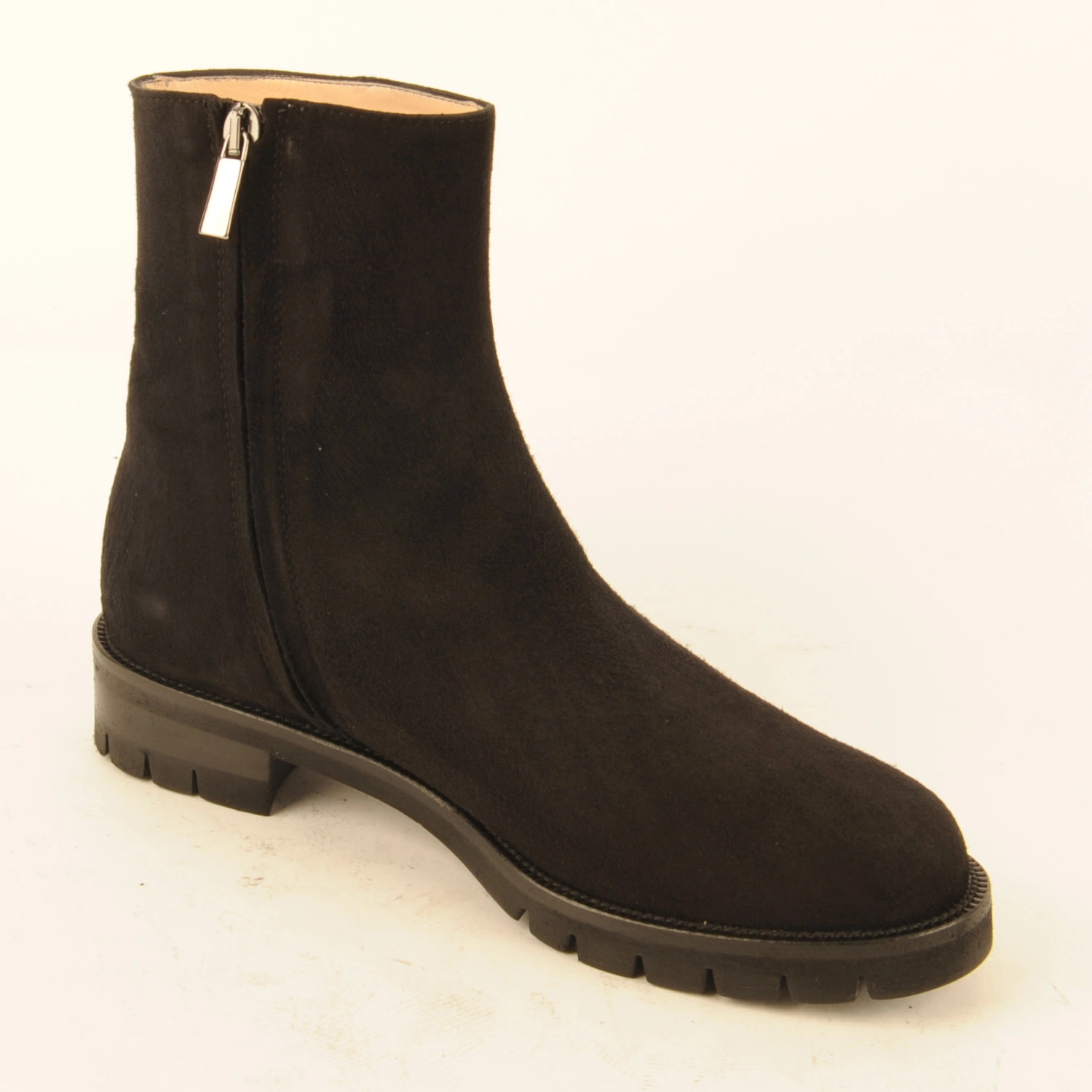 Primula € 239.00 Colors Sizes 36 36+ 37 37+ 38 38+ 39 39+ 40 40+ 41 Quantity select a size to continue Product information Article number: 1531.10.72 Ankle boot made of black suede. This boot is leather-lined and has a rubber lug sole.