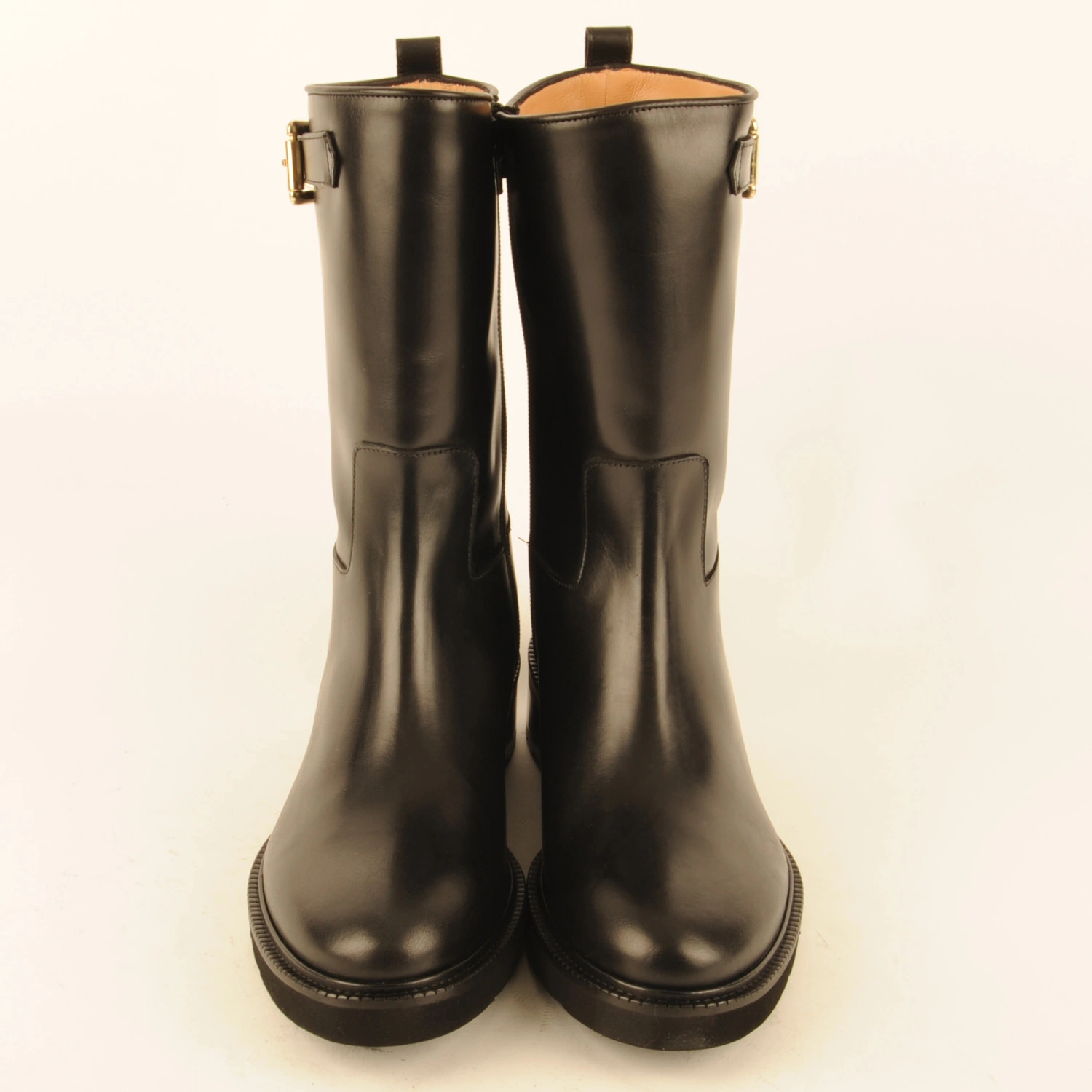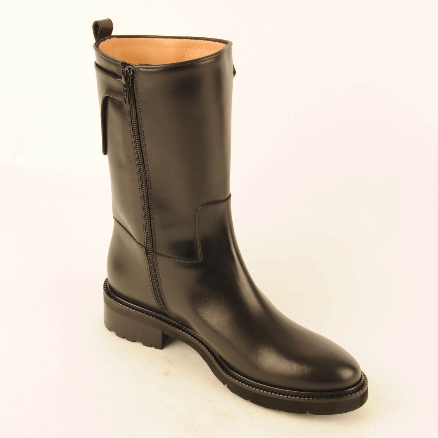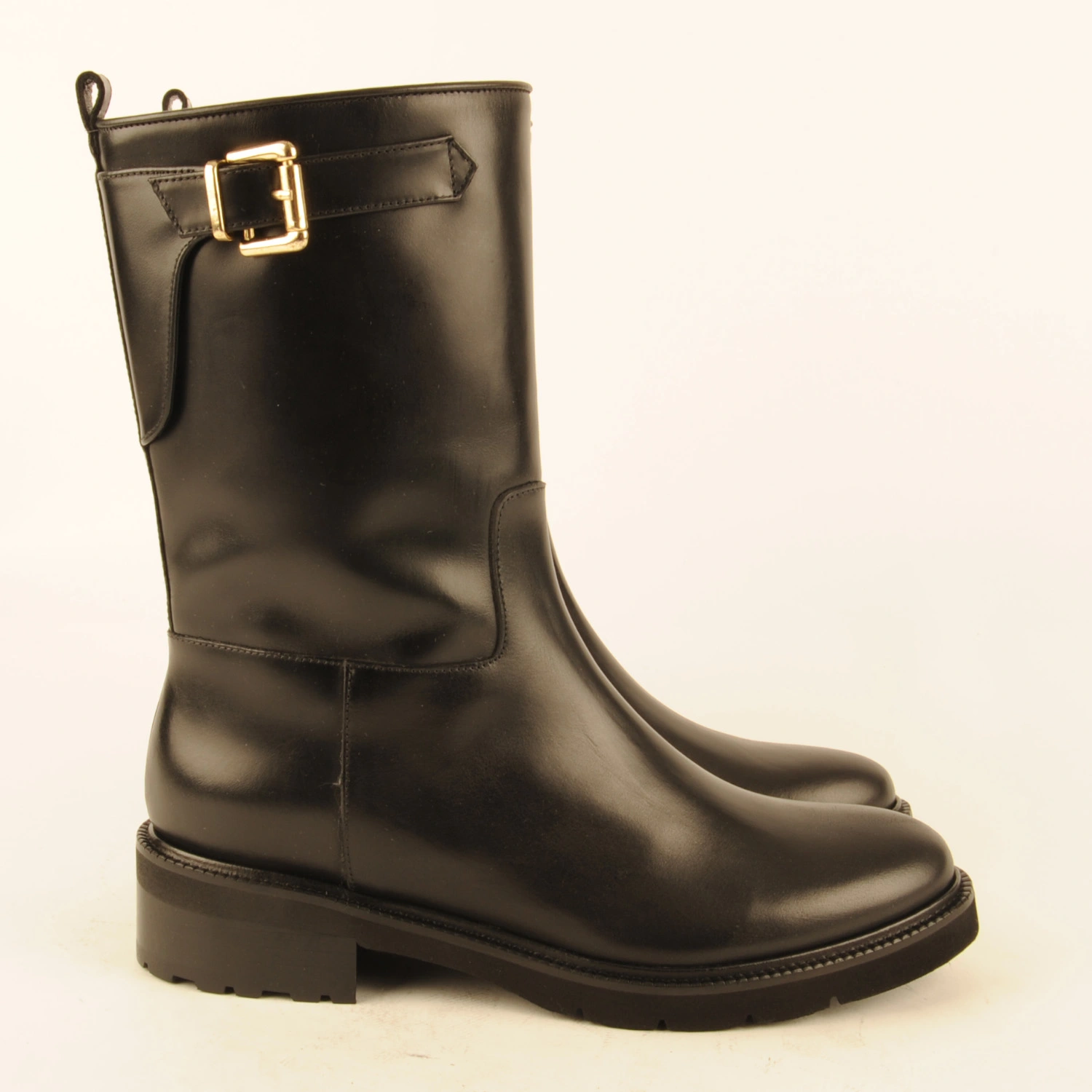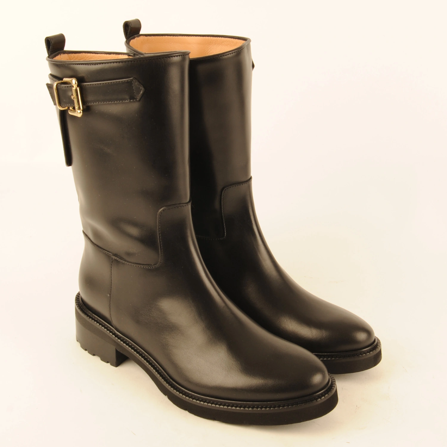 Romilda € 339.00 Colors Sizes 37 37+ 38 38+ 39 39+ 40 40+ 41 Quantity select a size to continue Product information Article number: 1534.10.57 Calf-length boot made of black calf leather with a small buckle at the top of the shaft and a 3-centimetre heel. This boot is leather-lined and has a rubber sole.