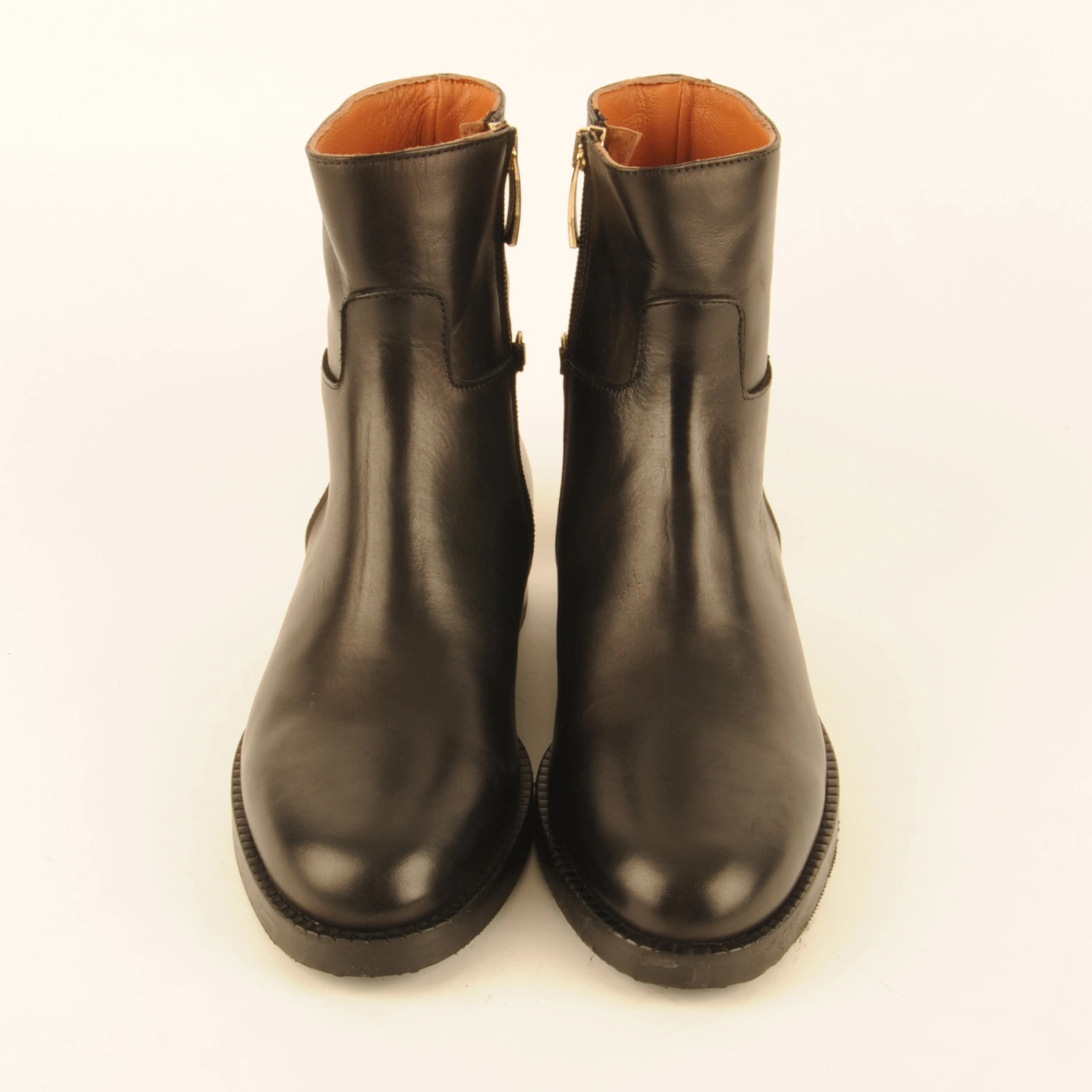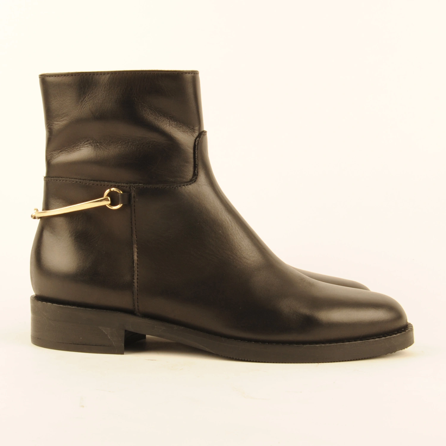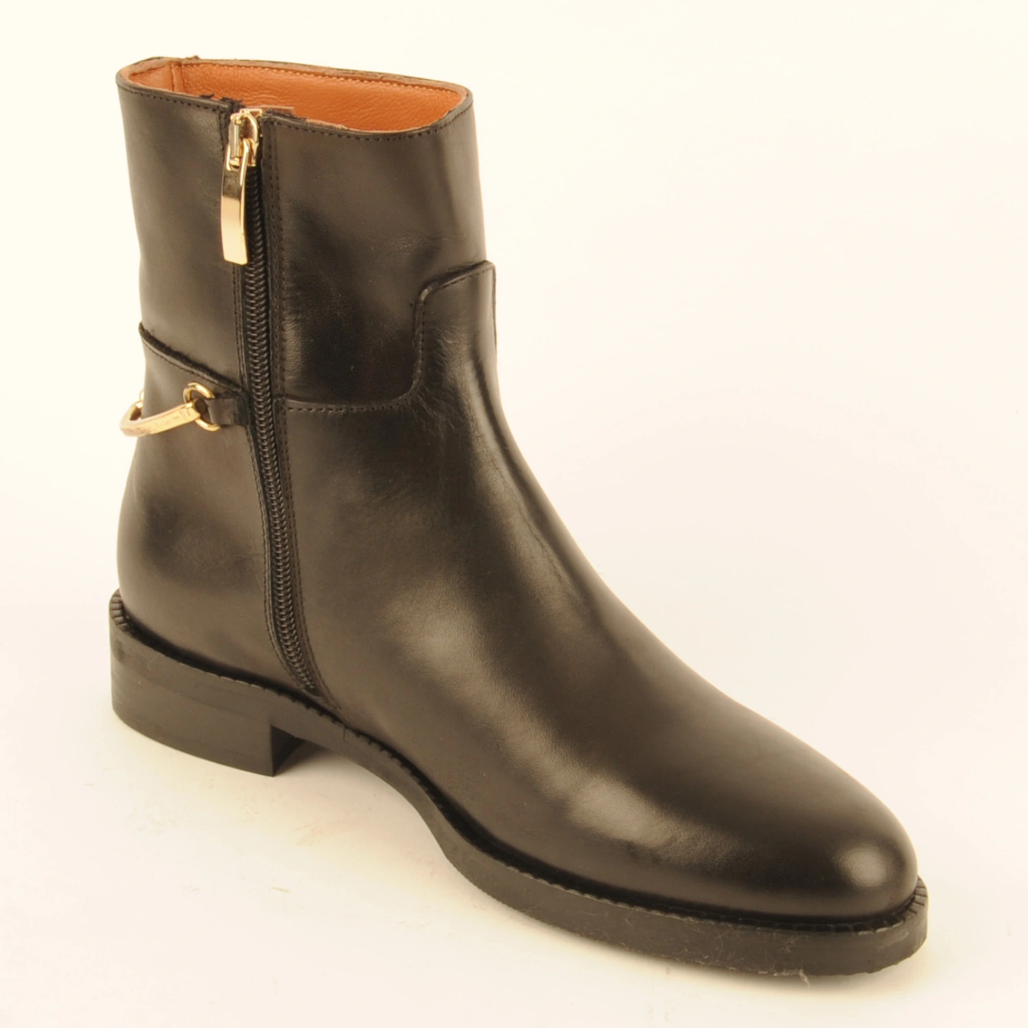Sancia € 198.00 Colors Sizes 36 37 38 39 40 41 42 Quantity select a size to continue Product information Article number: 1524.10.7 Ankle boot made of black leather with a gold-coloured detail in the heel. This boot is leather-lined and has a rubber sole with a 2-centimetre heel.