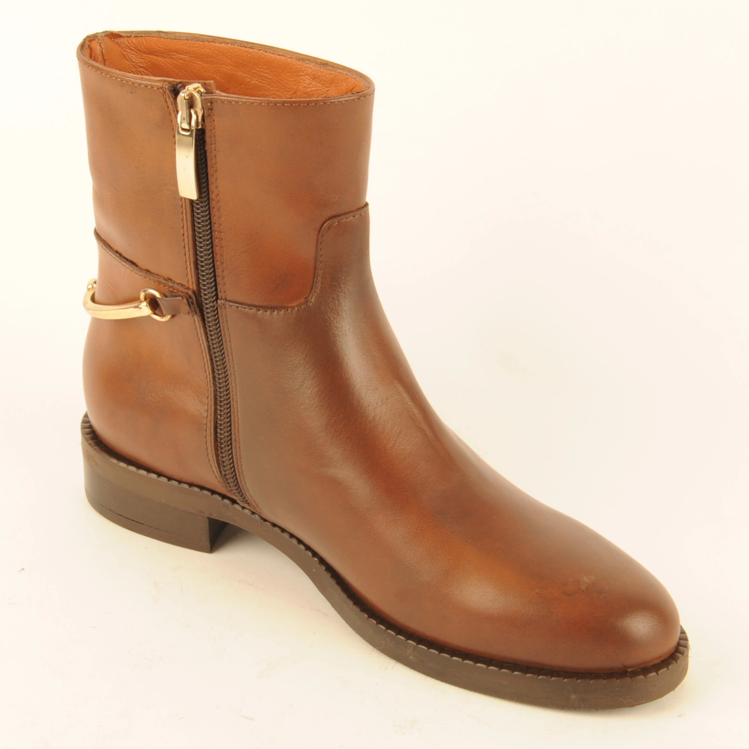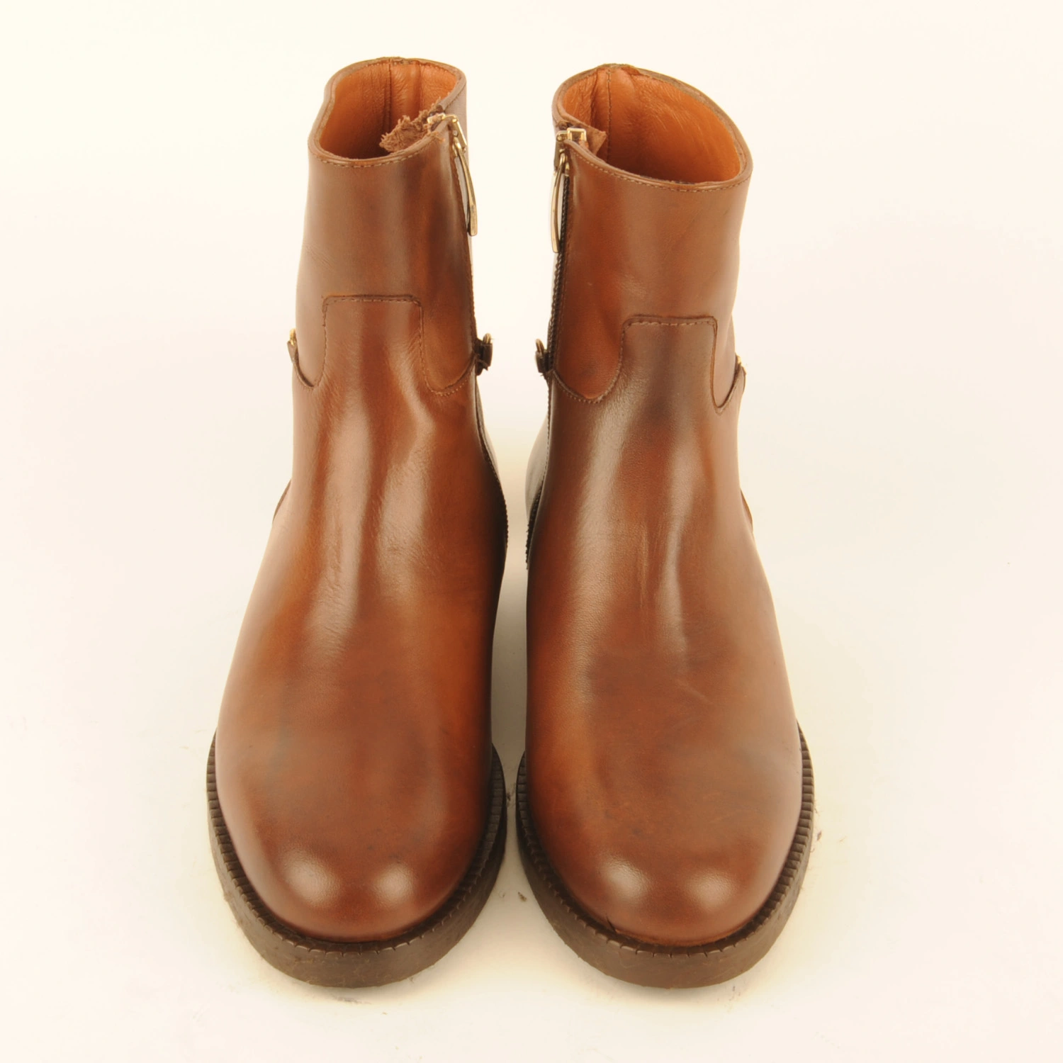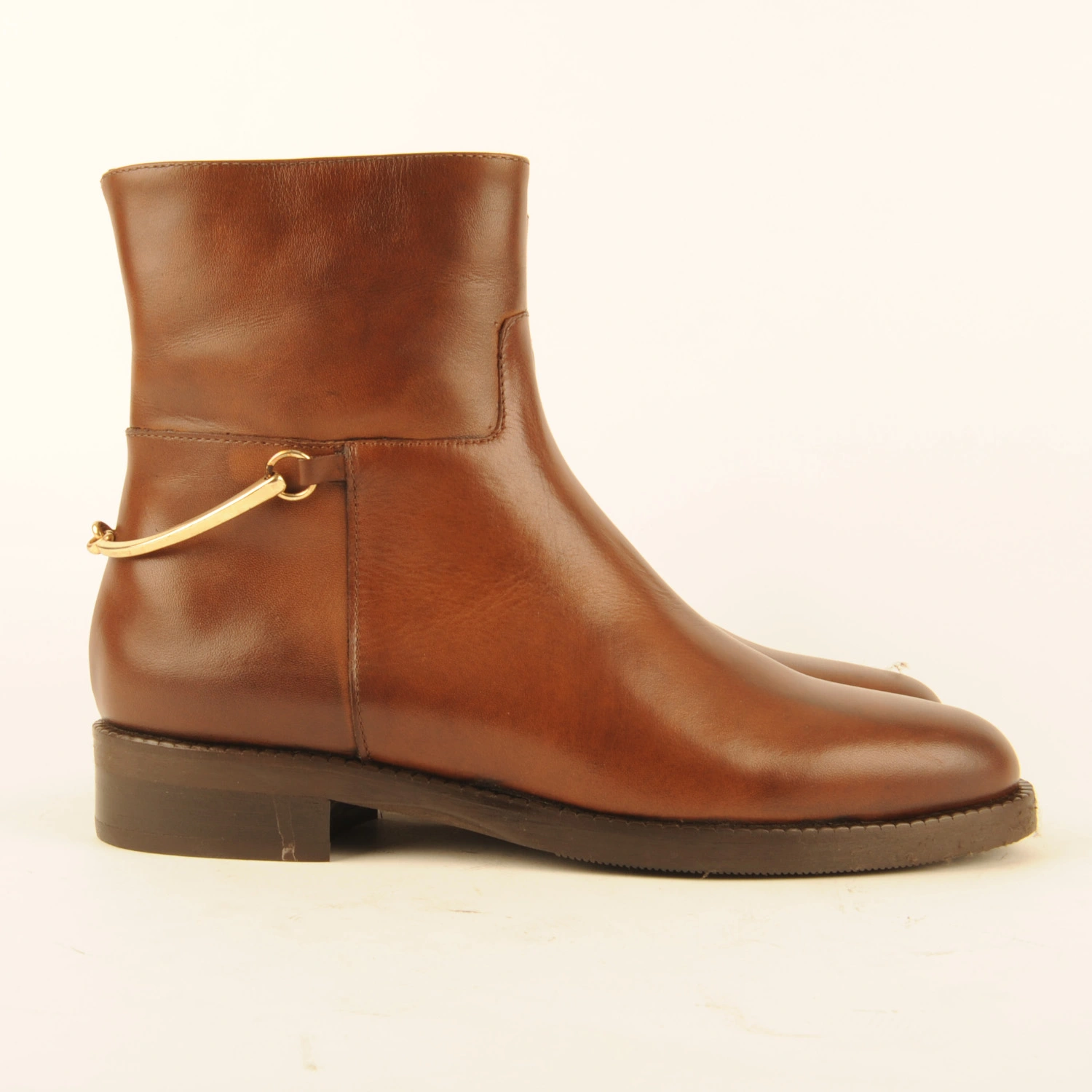Sancia € 198.00 Colors Sizes 36 37 38 39 40 41 42 Quantity select a size to continue Product information Article number: 1524.60.1 Ankle boot made of medium brown leather with a gold-coloured detail in the heel. This boot is leather-lined and has a rubber sole with a 2-centimetre heel.