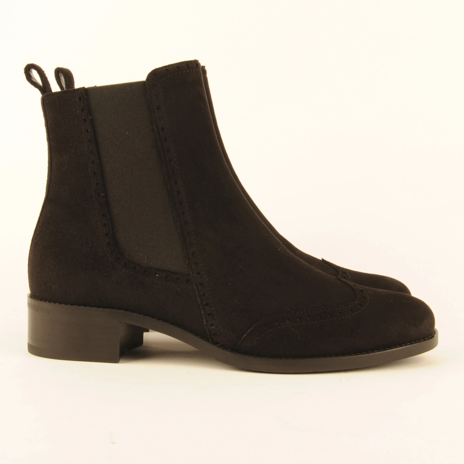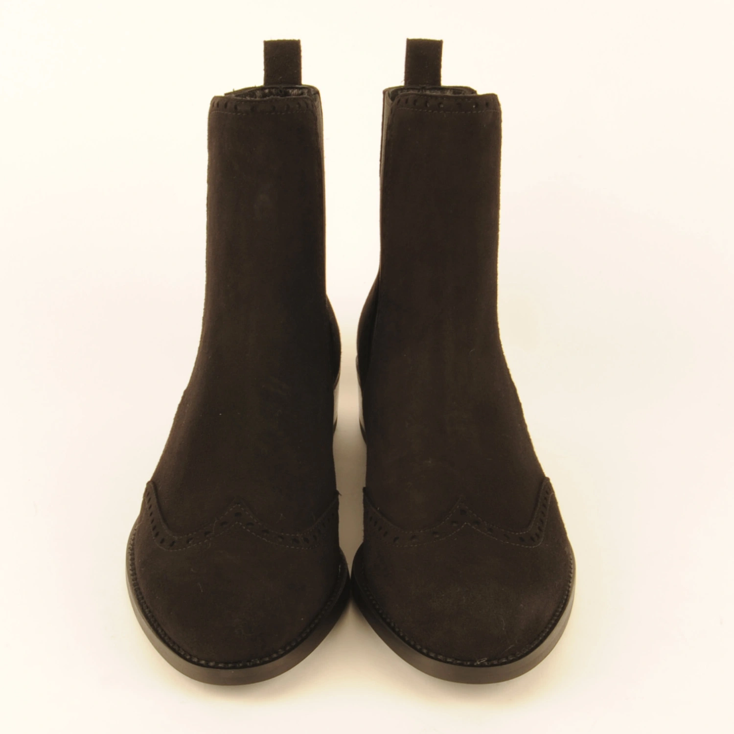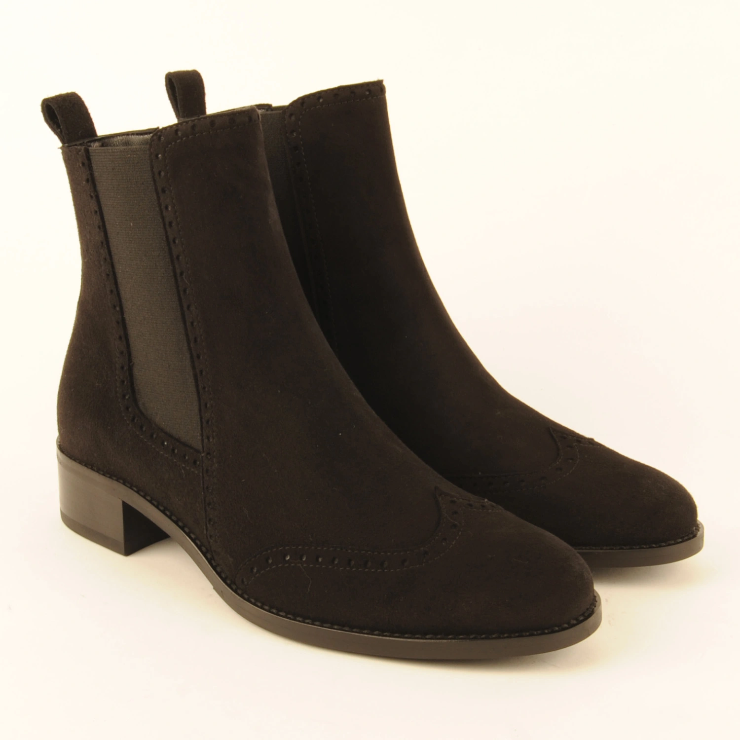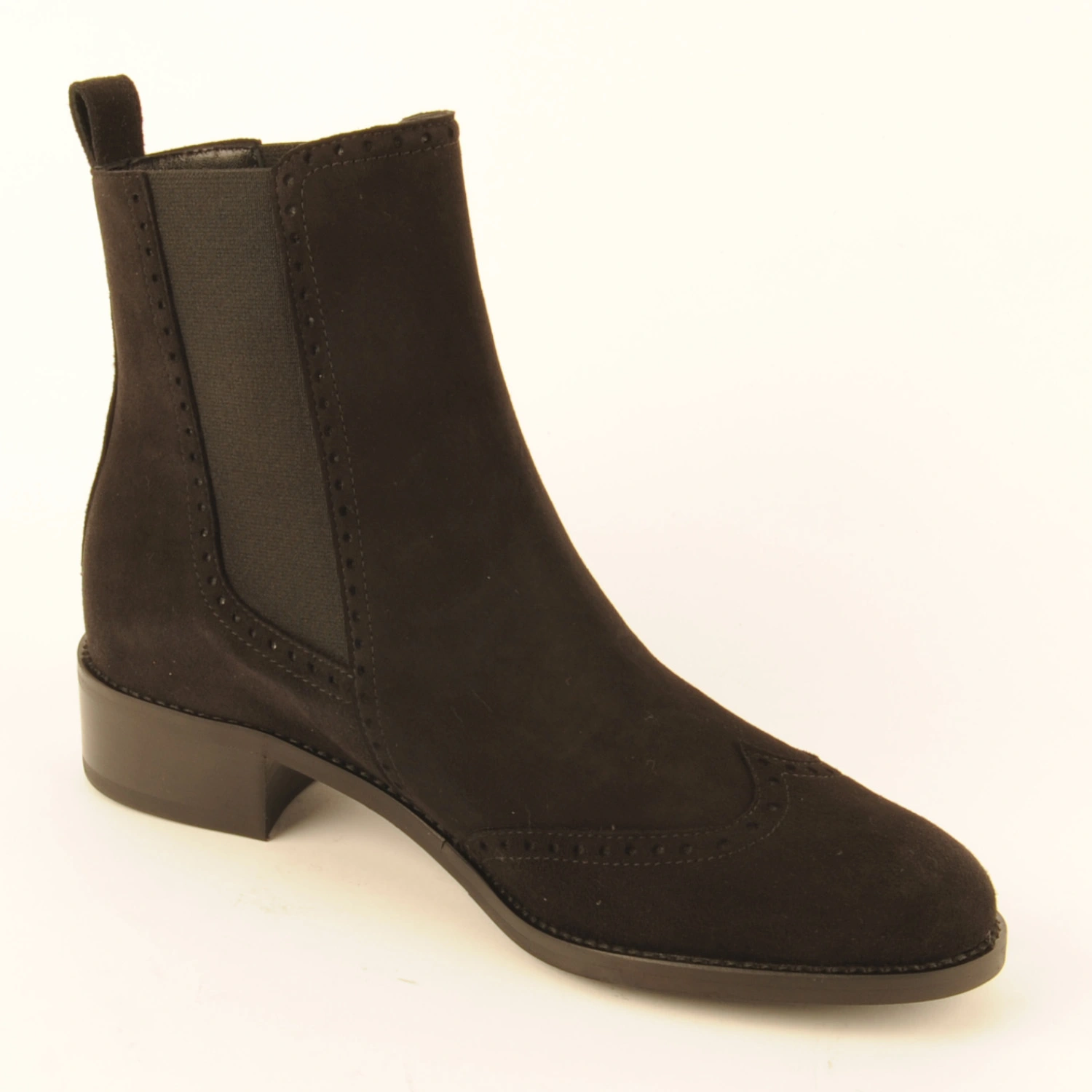 Vitalia € 289.00 Colors Sizes 36 36+ 37 37+ 38 38+ 39 39+ 40 40+ 41 41+ 42 Quantity select a size to continue Product information Article number: 1531.10.74 Ankle boot made of black suede with elastic and various perforations. This boot is leather-lined and has a rubber sole with a 3-centimetre heel.