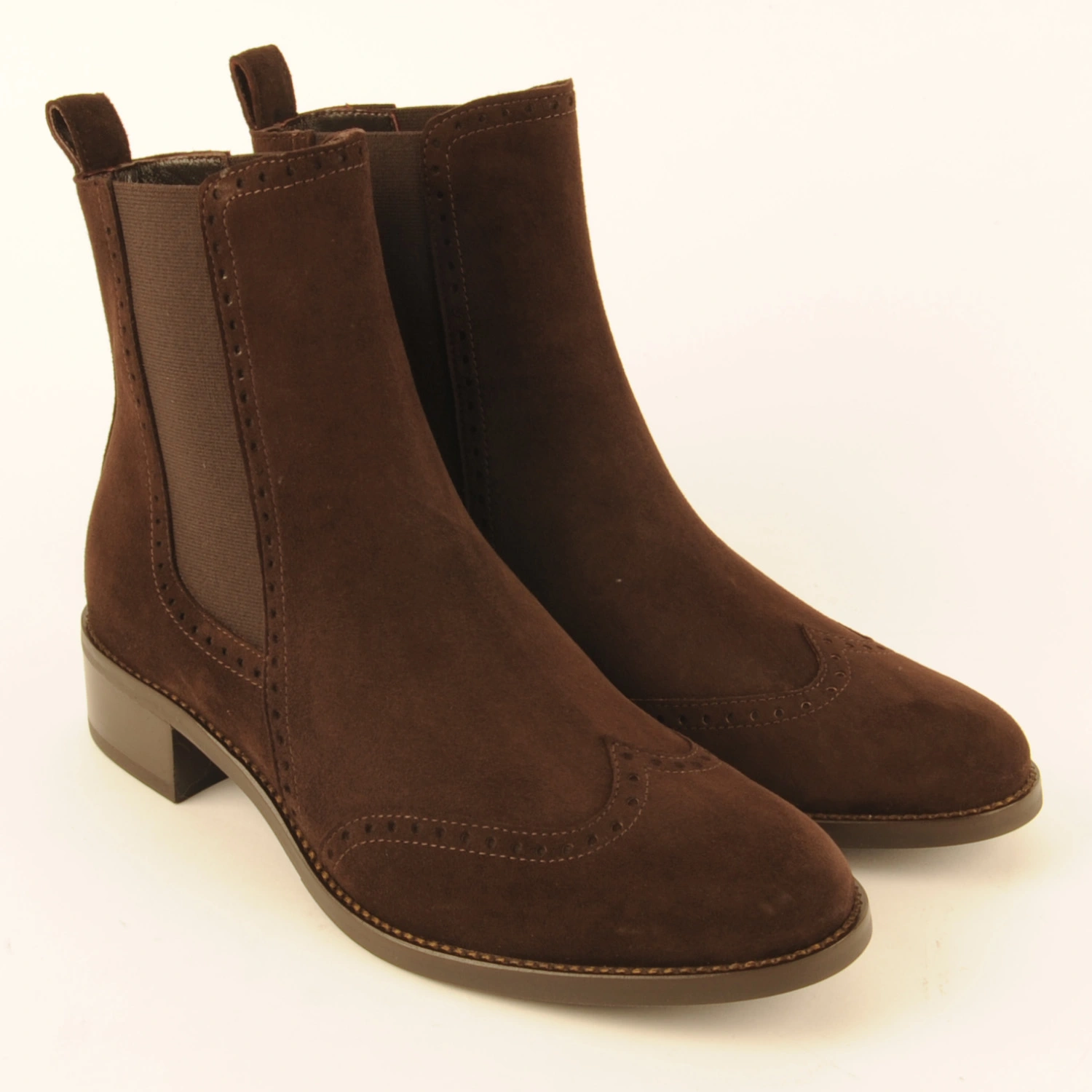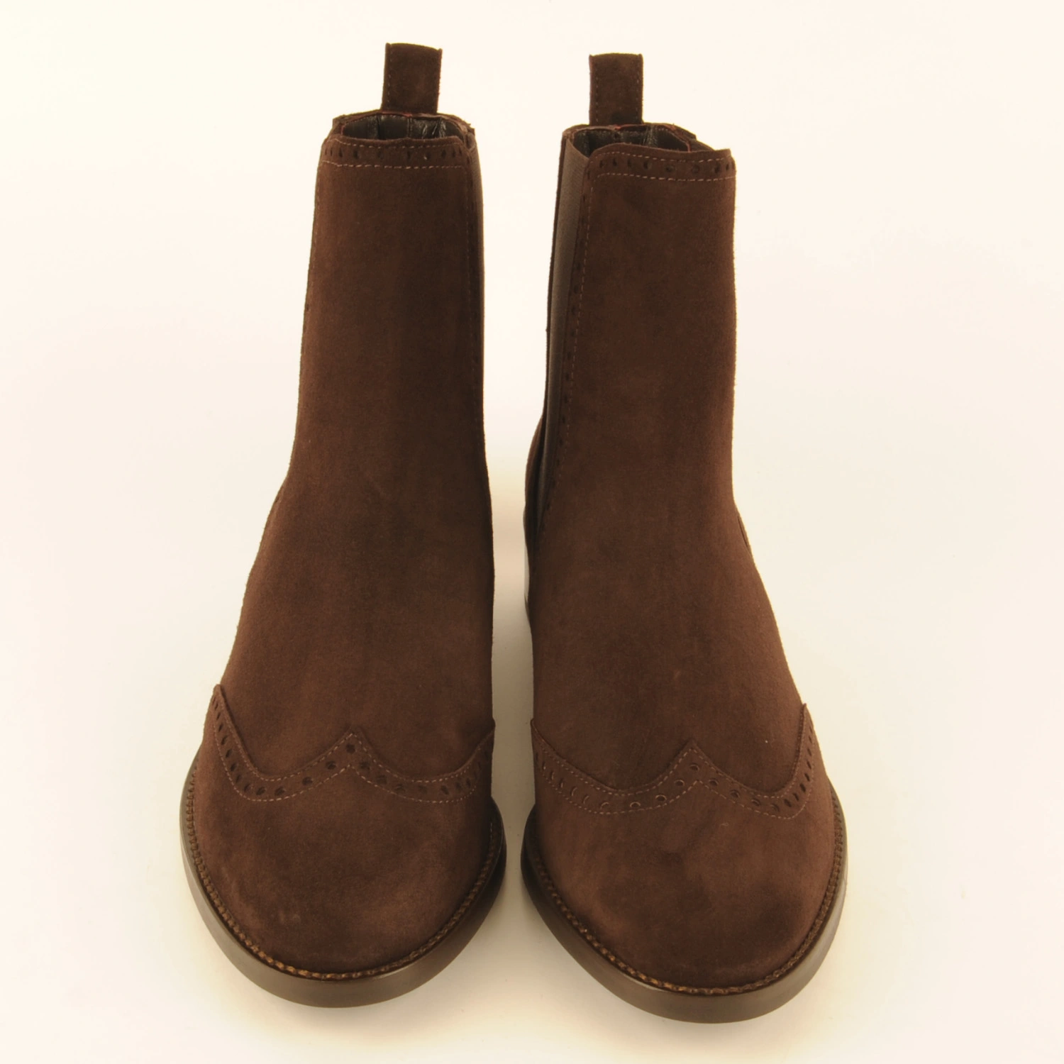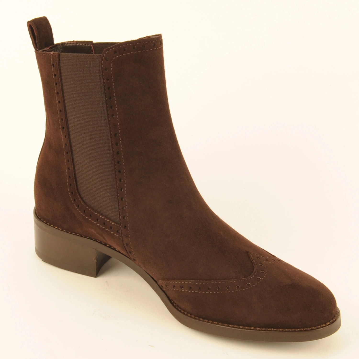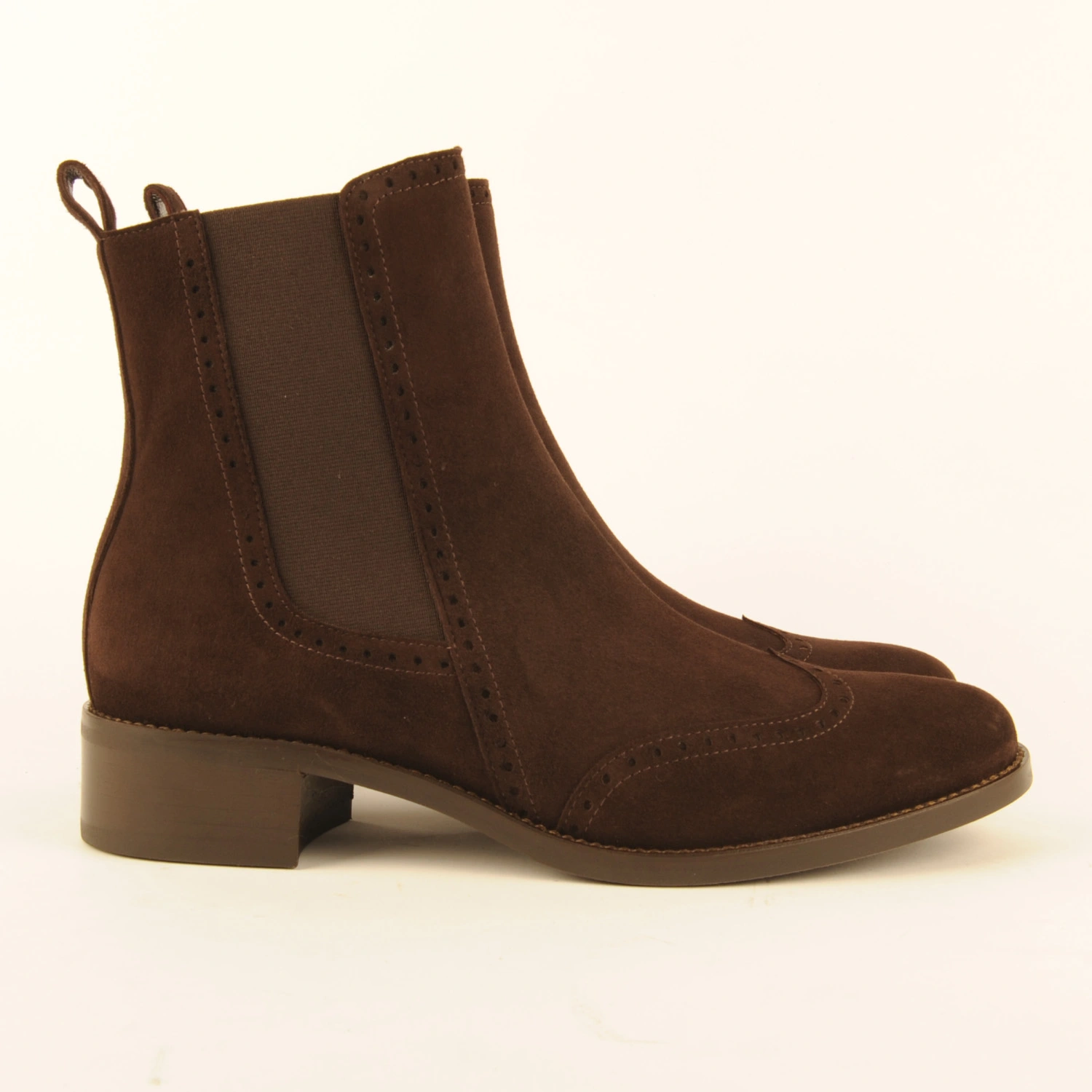 Vitalia € 289.00 Colors Sizes 36 36+ 37 37+ 38 38+ 39 39+ 40 40+ 41 41+ 42 Quantity select a size to continue Product information Article number: 1531.50.42 Ankle boot made of dark brown suede with elastic and various perforations. This boot is leather-lined and has a rubber sole with a 3-centimetre heel.