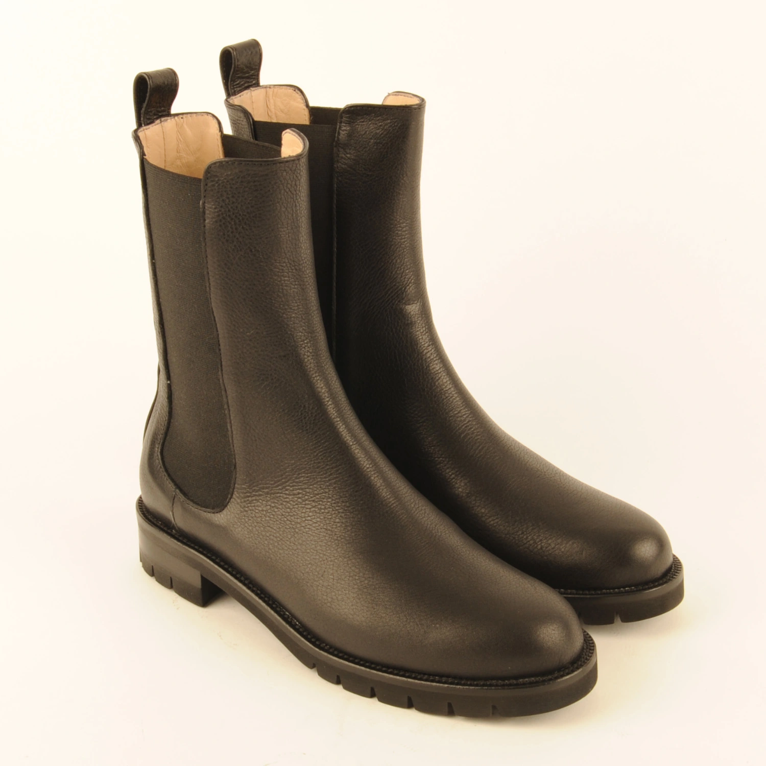Zinnia € 239.00 Colors Sizes 36 36+ 37 37+ 38 38+ 39 39+ 40 40+ 41 Quantity select a size to continue Product information Article number: 1534.10.58 Slightly longer ankle boot made of black deerskin with black elastic. This boot is leather-lined and has a rubber lug sole.