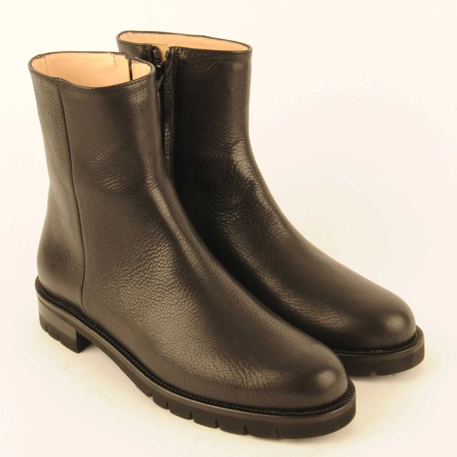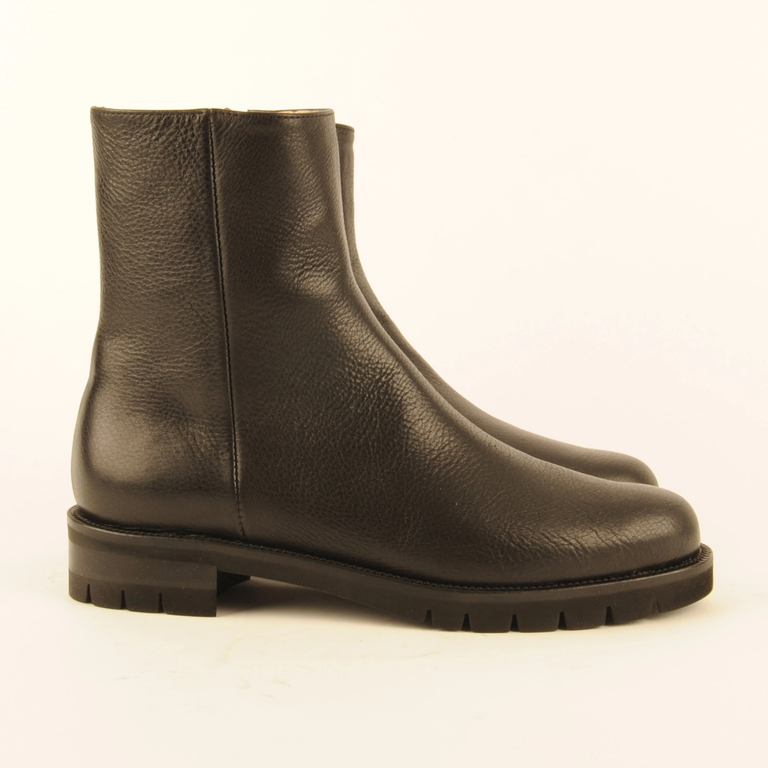 Enkellaars van zwart hertenleer. Dit laarsje is leer gevoerd en heeft een rubberen profielzool.