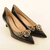 Pump in een combinatie van zwart leer en zwart lakleer met twee bandjes over de wreef. Volledig leergevoerd en voorzien van een leren zool met rubberen inleg en een hak van 6 centimeter.