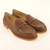 Luxe sneaker in een combinatie van donkerbruin leer en wolwit gevlochten leer. Deze veterschoen is leer gevoerd en heeft een witte rubberen zool.